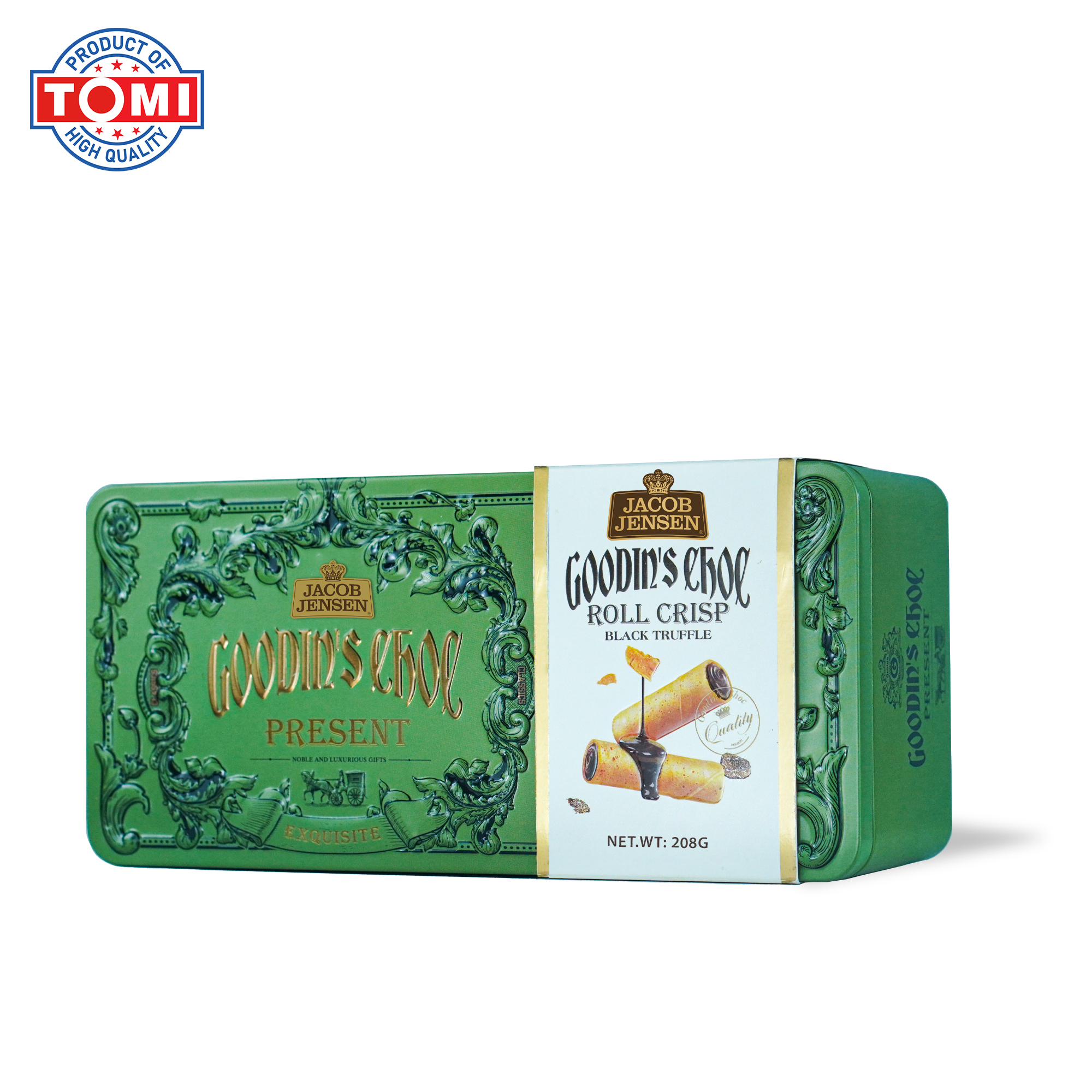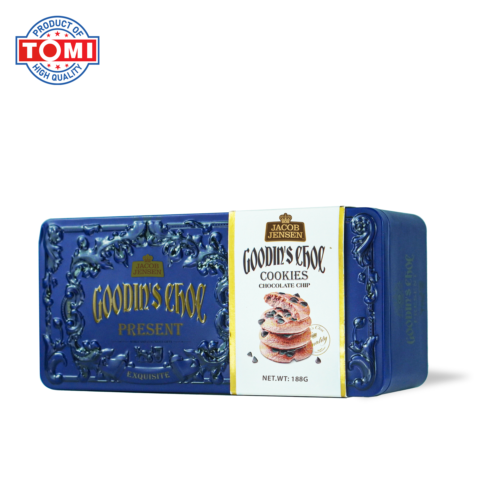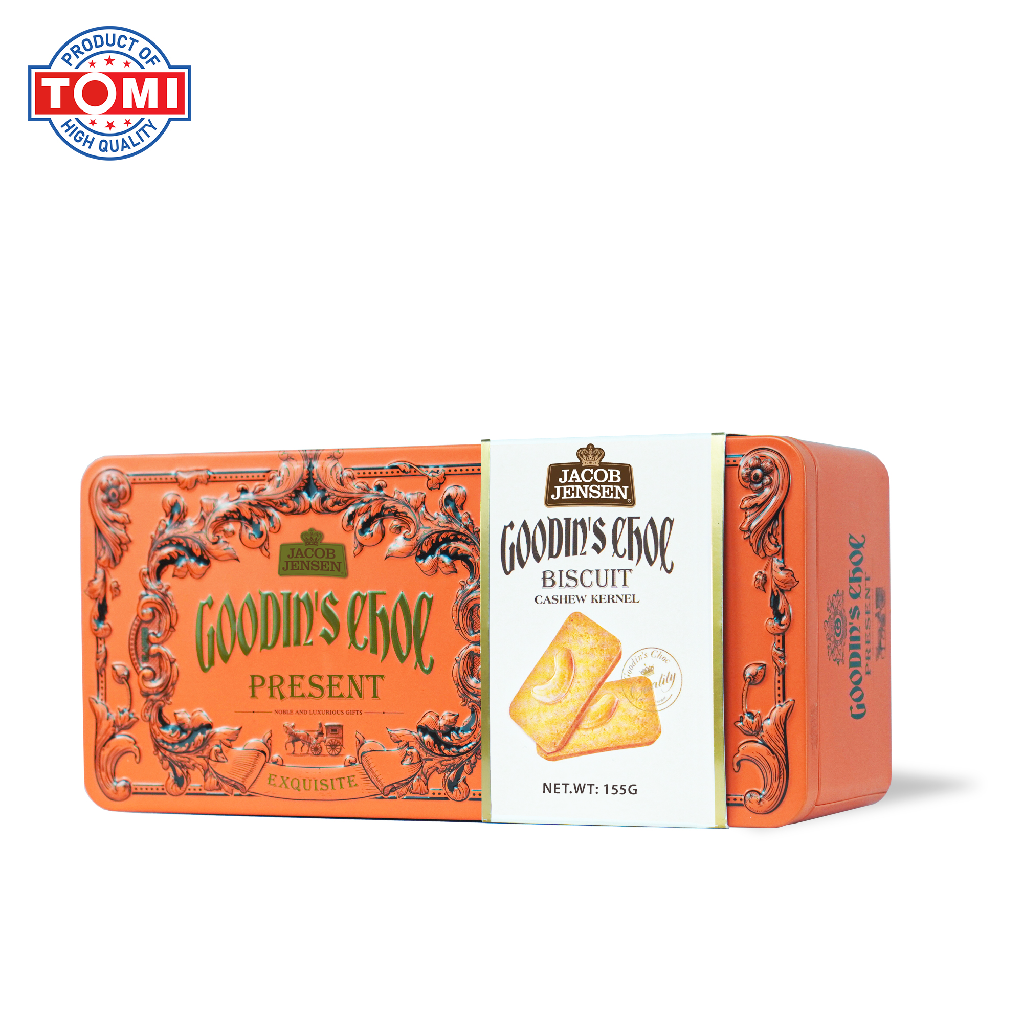Bánh Jacob Jensen xuất xứ HongKong. Bánh Jacob Jensen được làm từ bơ thơm lừng, hòa quyện cùng vị ngọt thanh tao và chút mặn nhẹ nơi đầu lưỡi. Bánh quy có hương vị vừa phải, không quá ngọt hay quá mặn, ăn hoài không ngán. Bao bì đẹp mắt, thu hút ánh nhìn ngay từ lần đầu tiên. Bánh quy Jacob Jensen phù hợp để thưởng thức trong những buổi trà chiều, liên hoan hoặc làm quà tặng cho bạn bè, người thân.