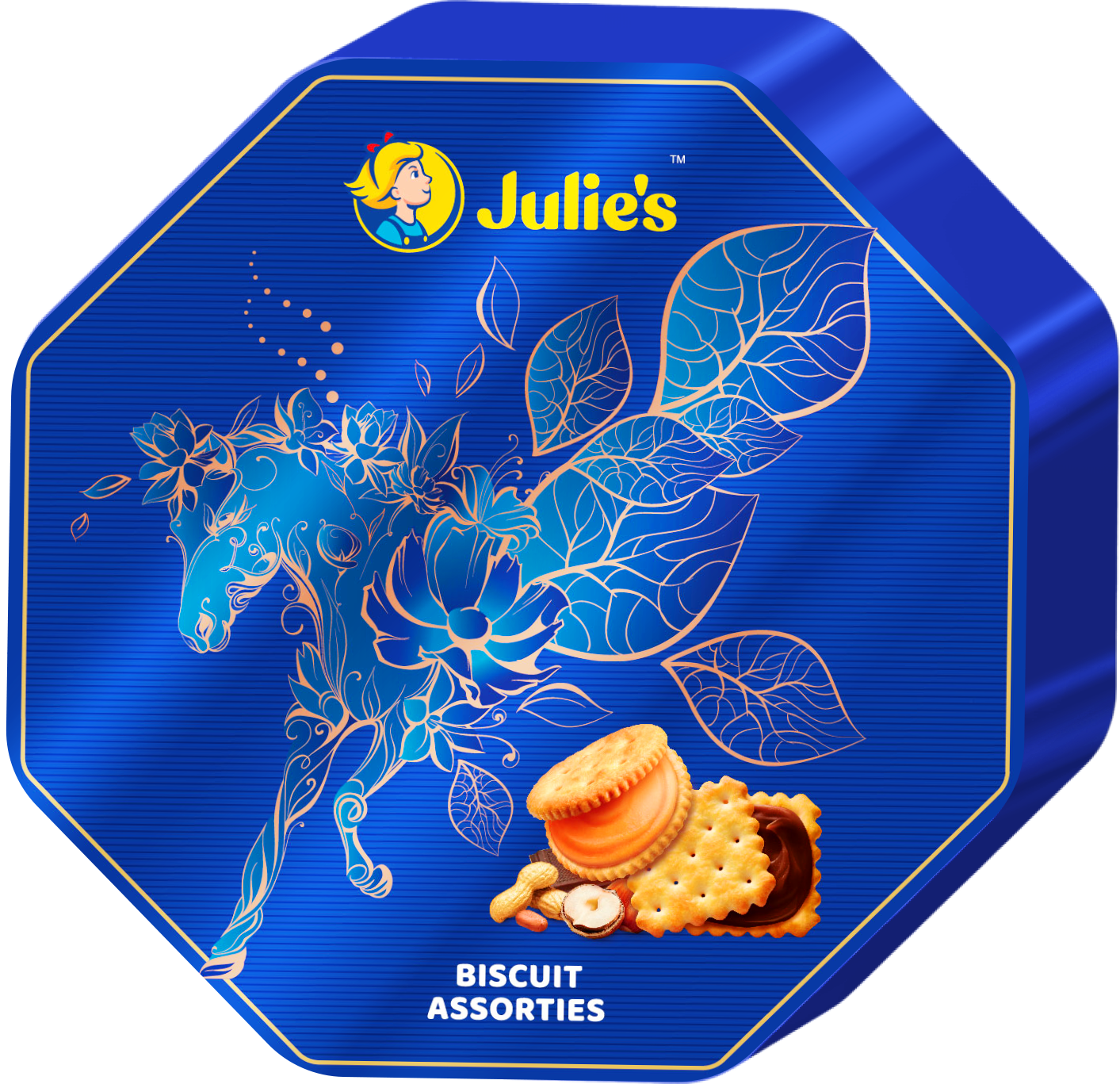 Bánh quy thập cẩm Julie’s mang đến hương vị thơm ngon, giòn tan. Hộp bánh nhân bơ đậu phộng và Socola hạt phỉ mang đến hương vị giòn tan béo ngậy, đáp ứng sở thích đa dạng của mọi lứa tuổi. Đây là món ăn vặt hoàn hảo giúp bạn giải tỏa cơn đói và cung cấp năng lượng cho cơ thể. Hộp bánh quy thập cẩm được thiết kế đẹp mắt, sang trọng, thích hợp làm quà tặng cho người thân, bạn bè trong những dịp đặc biệt.