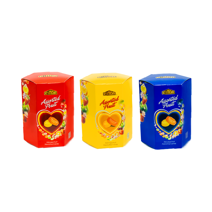 RINDA ASSORTED – KẸO TRÁI CÂY HỖN HỢP 140G Kích thước: 175 x 100 x 65 mmH Quy cách: 25 hộp 30/10/2025 Quản Trị
